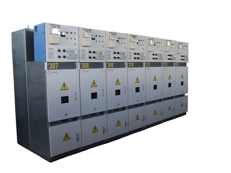 - Ячейки КРУ (комплектно распределительные устройства). Они рассчитаны на определенную величину напряжения и тока, которые нельзя превышать. Выполнены в виде шкафов, соединенных в один ряд. По назначению они бывают вводные, секционные и распределительные, которые непосредственно питают или другие подстанции потребителей или же непосредственно высоковольтные электрические машины.